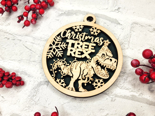 Christmas Tree Rex Ornament - Laser Cut Holiday Tree Decor