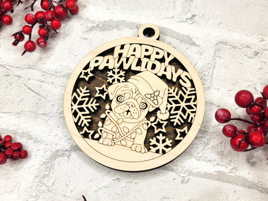 Happy Pawlidays Dog Ornament - Laser Cut Christmas Tree Decor