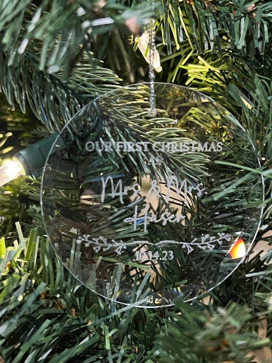Our First Christmas - Custom Engraved Round Glass Ornament