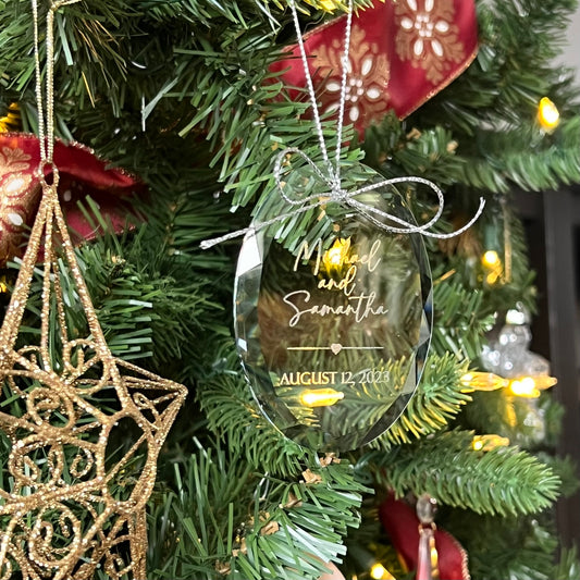 Engagement or Wedding - Custom Engraved Oval Glass Ornament