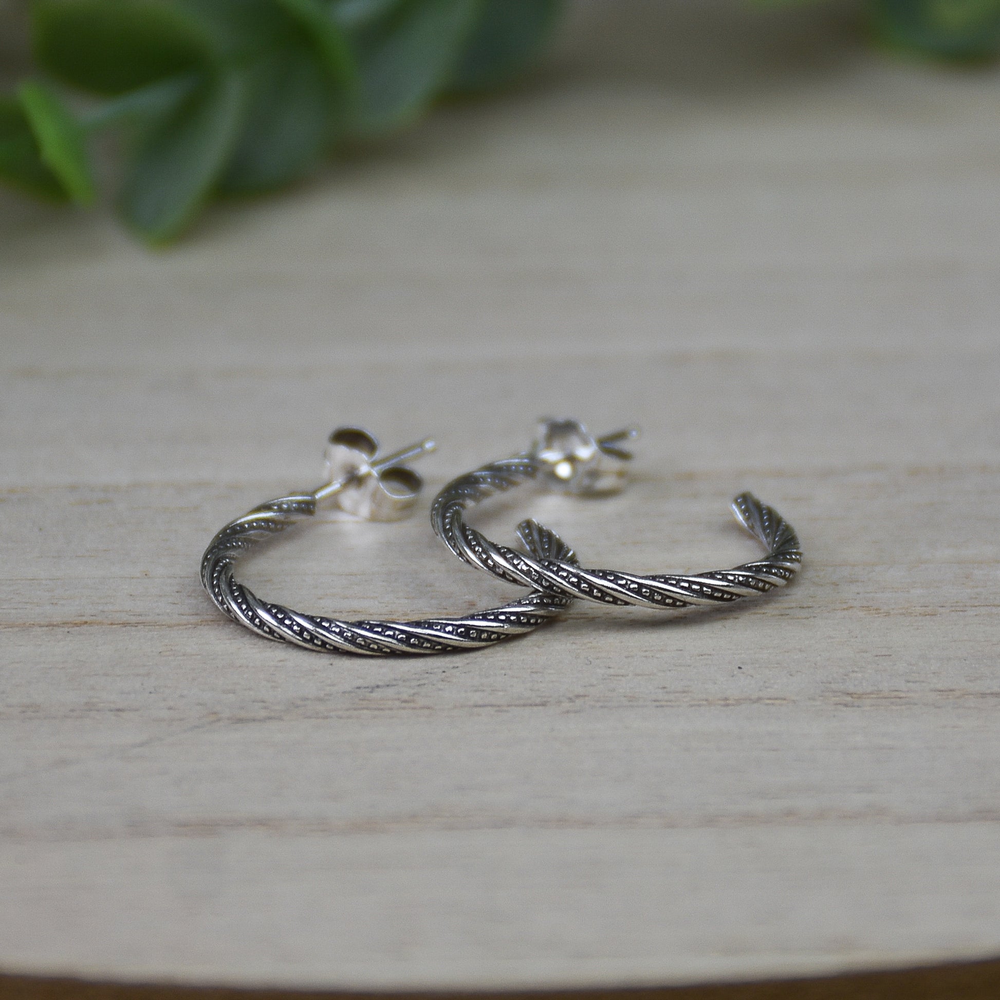 Antiqued Dot Twist Hoop Earrings - Sterling Silver