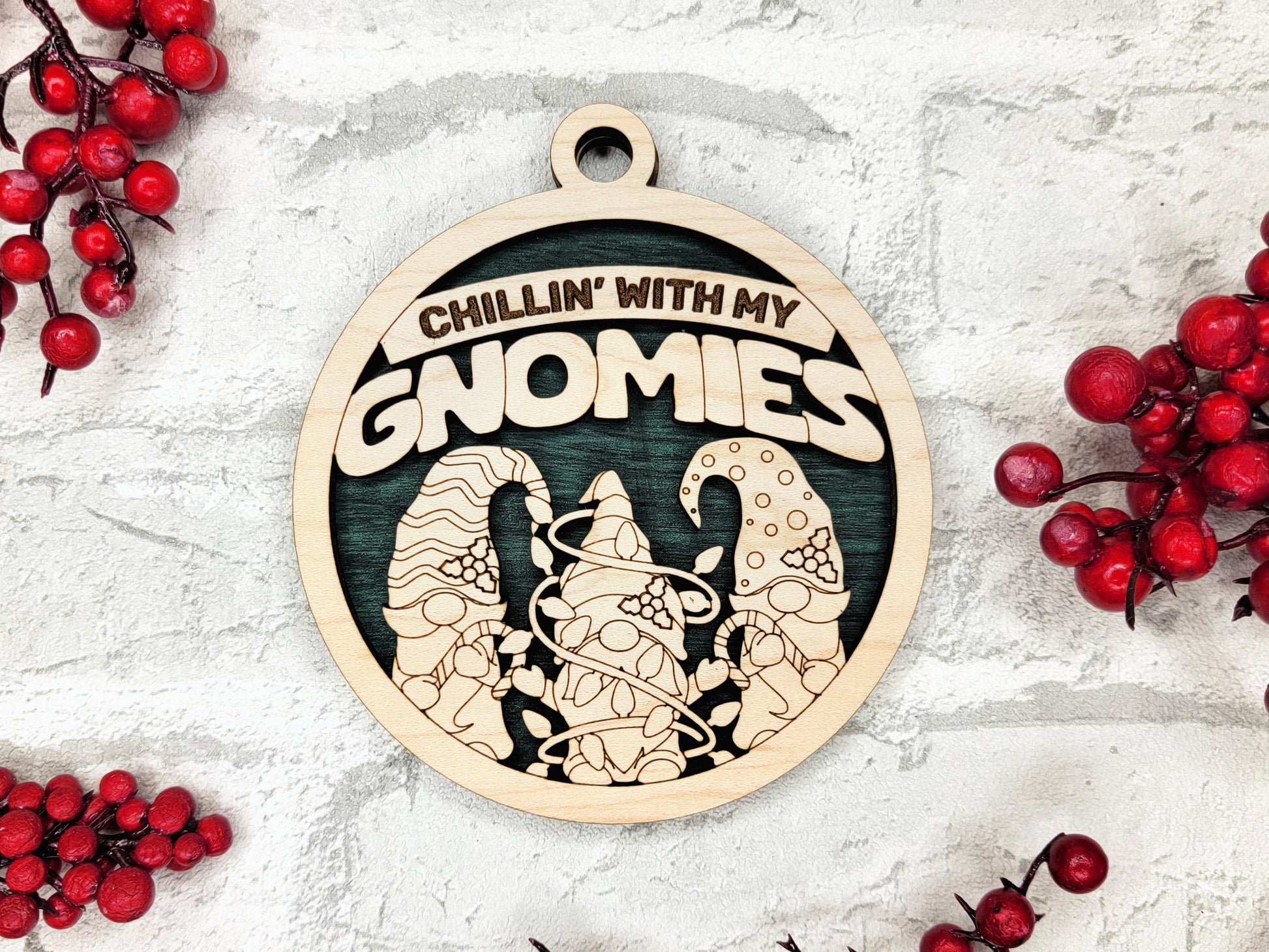 Chillin with My Gnomies Ornament - Laser Cut Christmas Decor