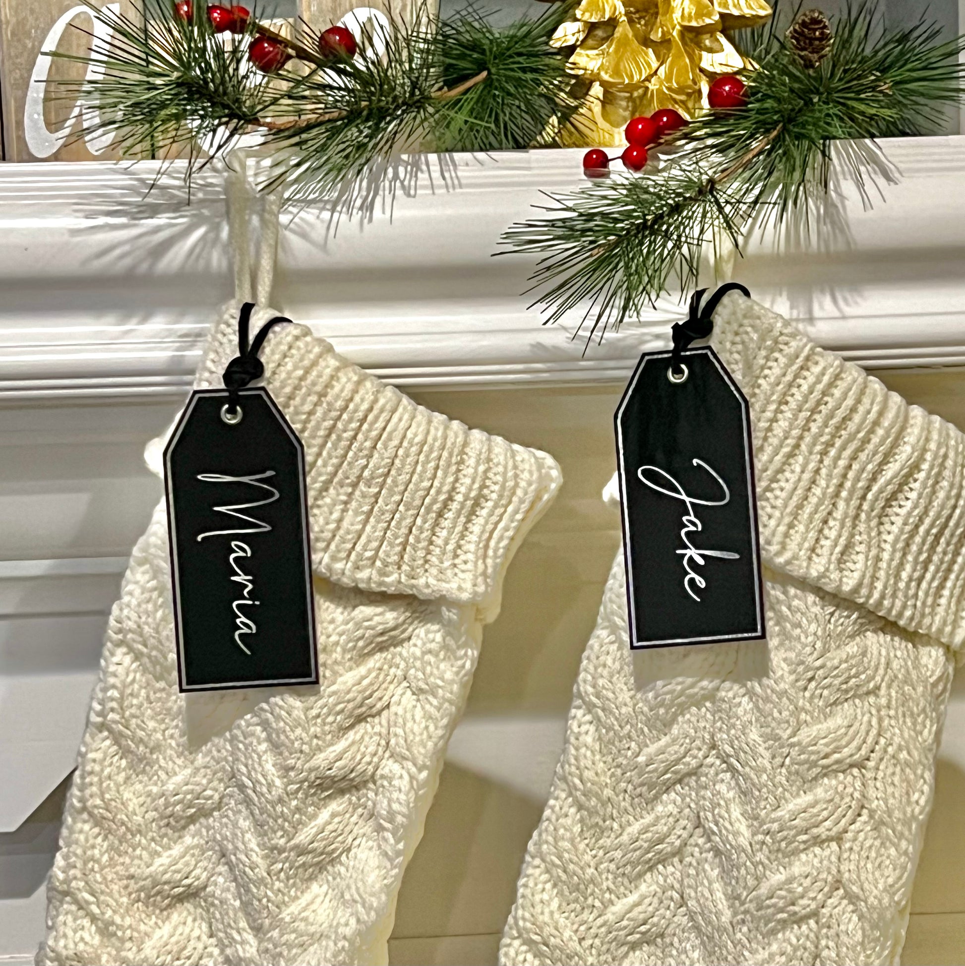 Christmas Stocking Leatherette Tags - Personalized Name Tags