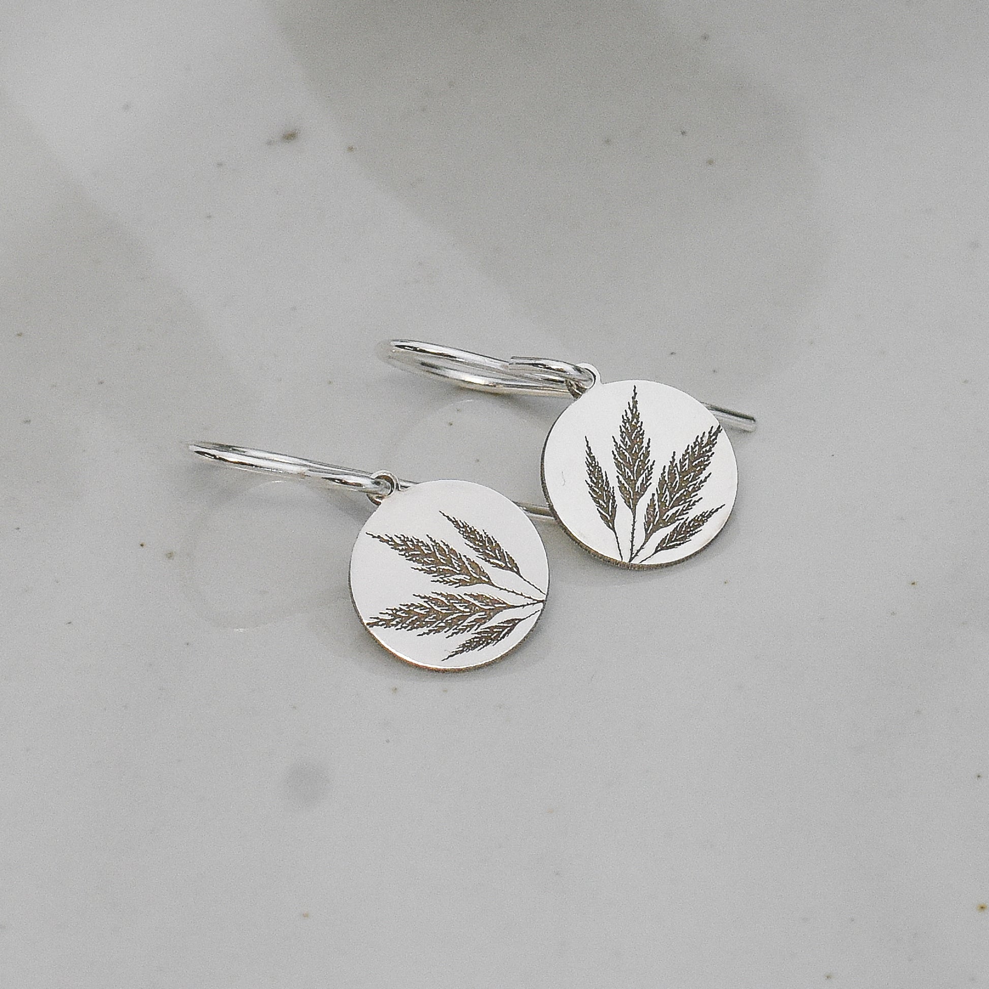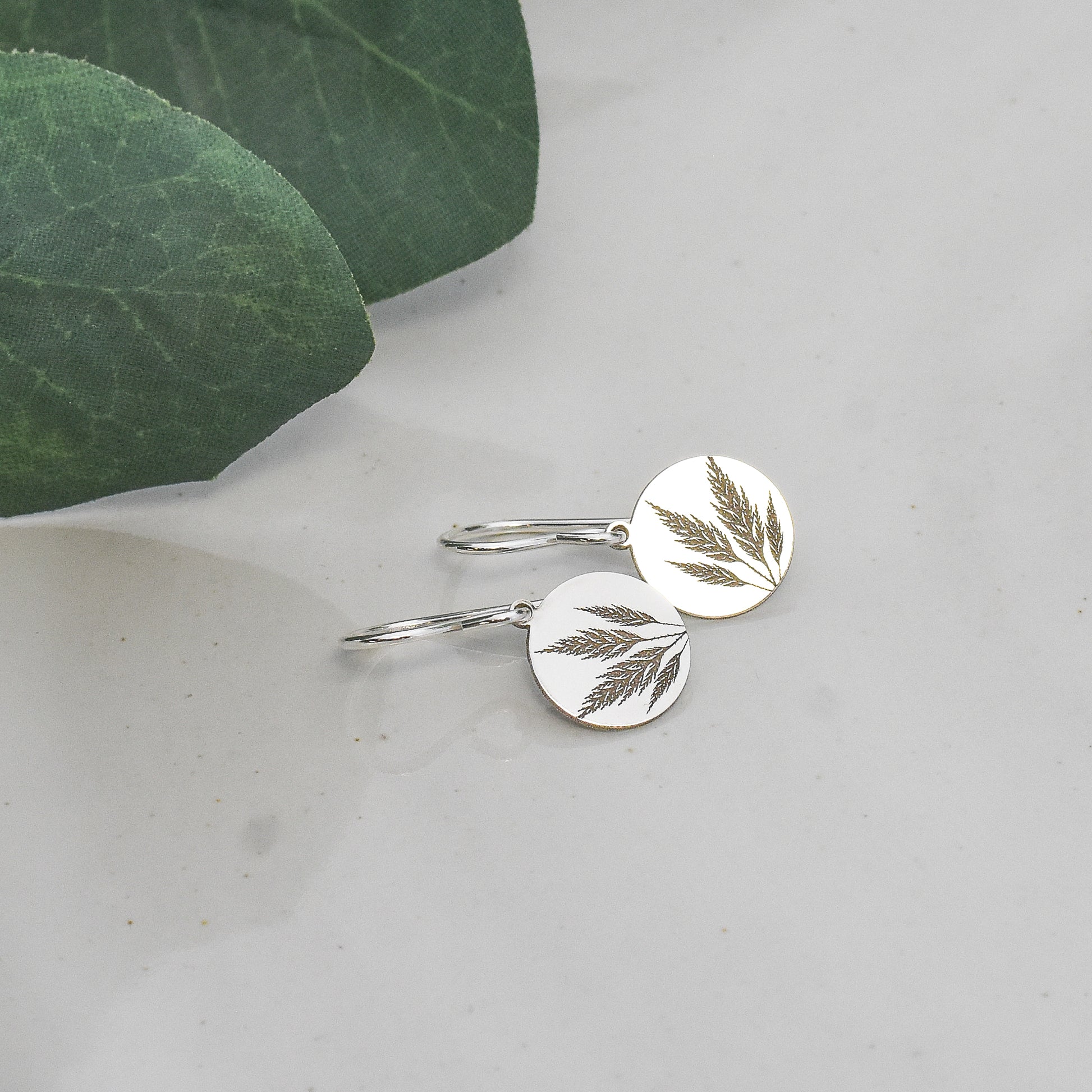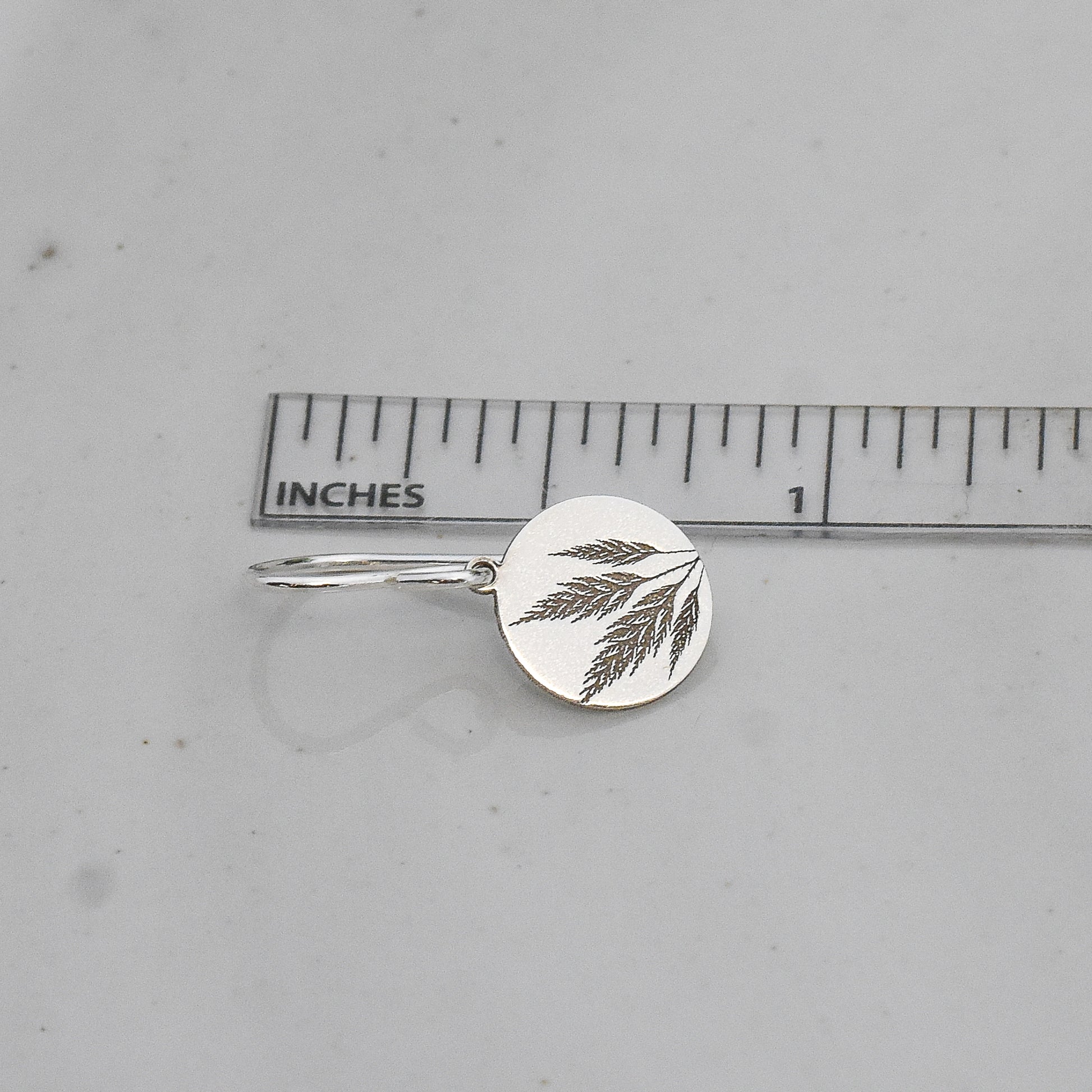 These artisanal Evergreen Branch Earrings are crafted with sterling silver to create a petite, minimalist design. Detailed with unique botanical engravings, the earrings are designed and cut in-house and can be customized with your choice of ear wire and size. Perfect for dainty jewelry enthusiasts.
