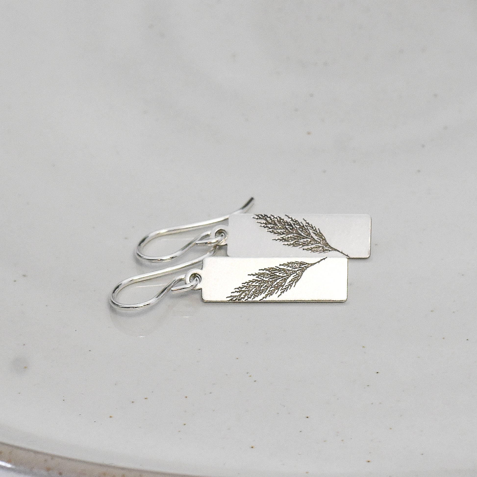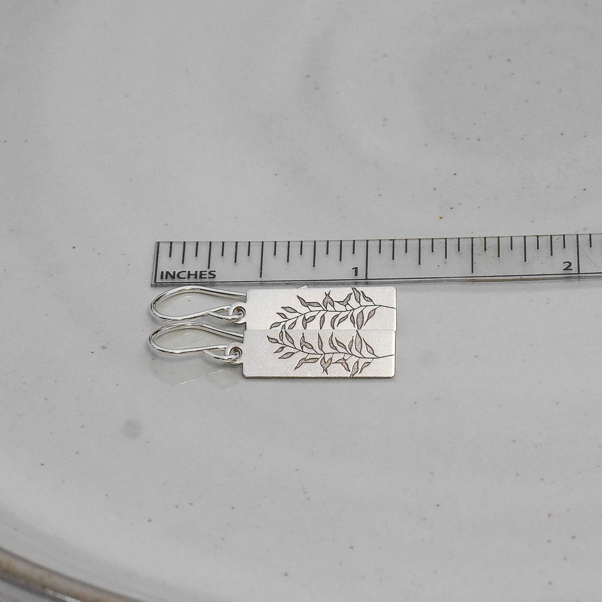 These artisanal Olive Branch Earrings are crafted with sterling silver to create a petite, minimalist design. Detailed with unique botanical engravings, the earrings are designed and cut in-house and can be customized with your choice of ear wire and size. Perfect for dainty jewelry enthusiasts.