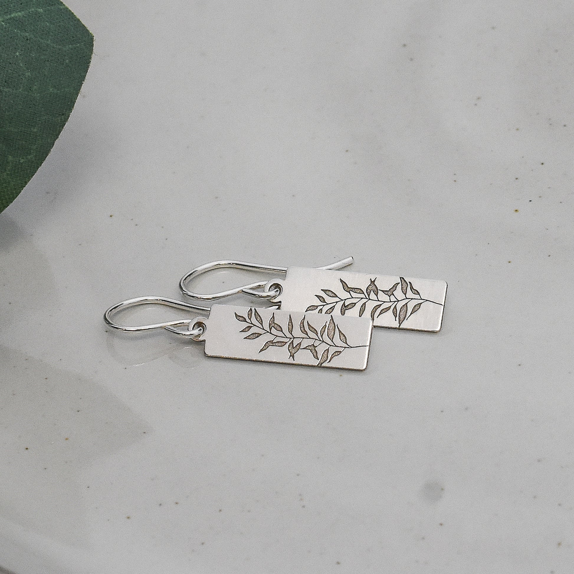 These artisanal Leaves & Stems Earrings are crafted with sterling silver to create a petite, minimalist design. Detailed with unique botanical engravings, the earrings are designed and cut in-house and can be customized with your choice of ear wire and size. Perfect for dainty jewelry enthusiasts.