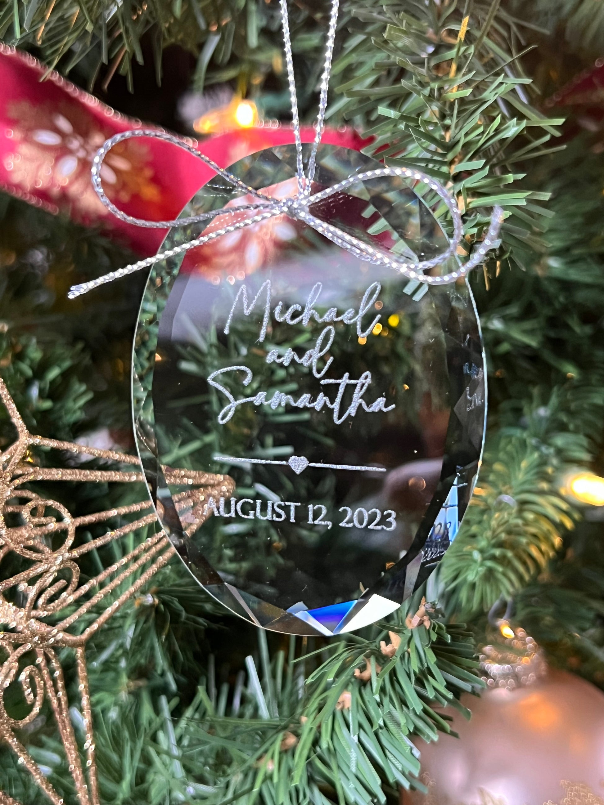 Engagement or Wedding - Custom Engraved Oval Glass Ornament