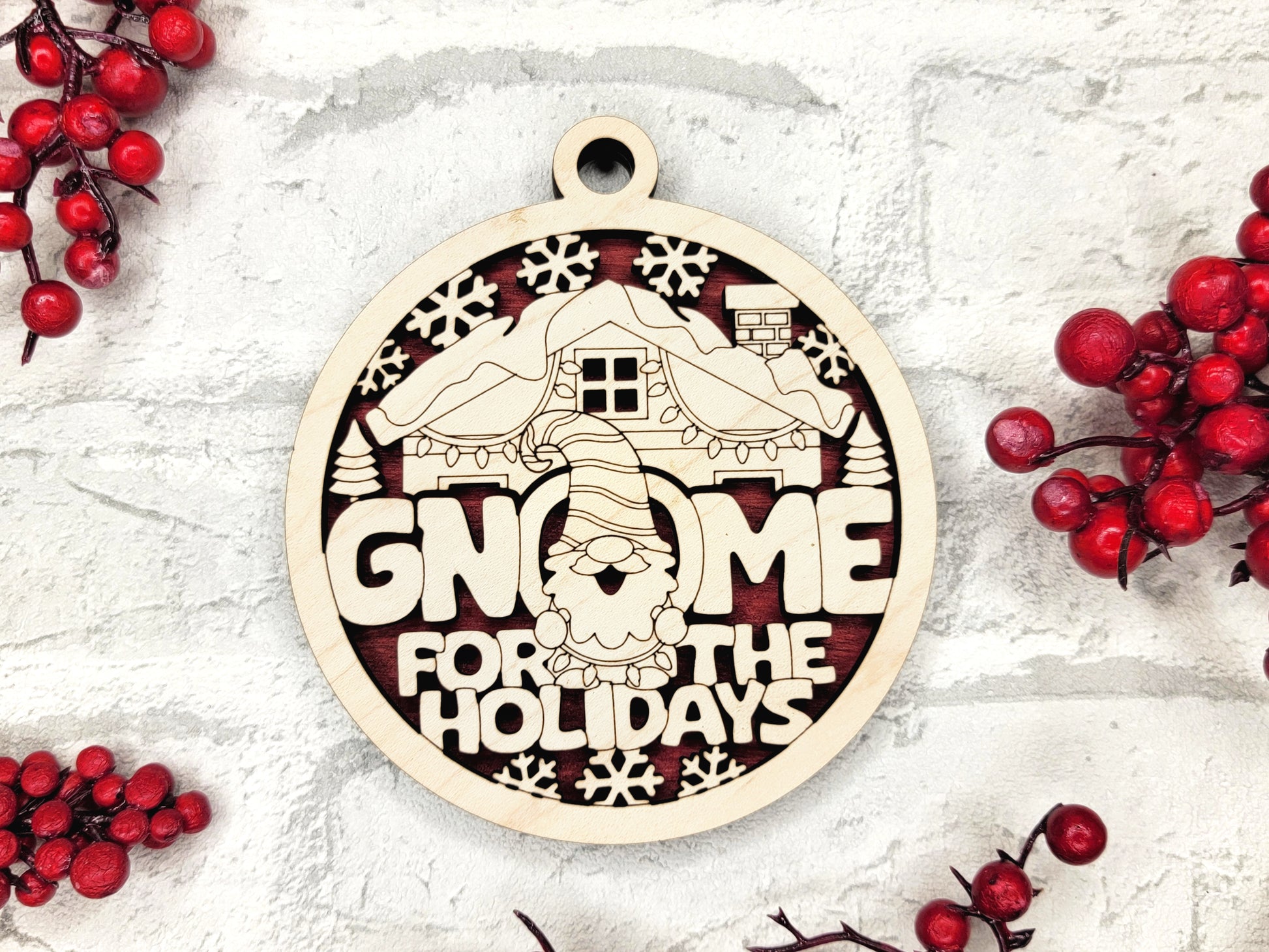 Gnome for the Holidays Ornament - Laser Cut Christmas Tree Decor