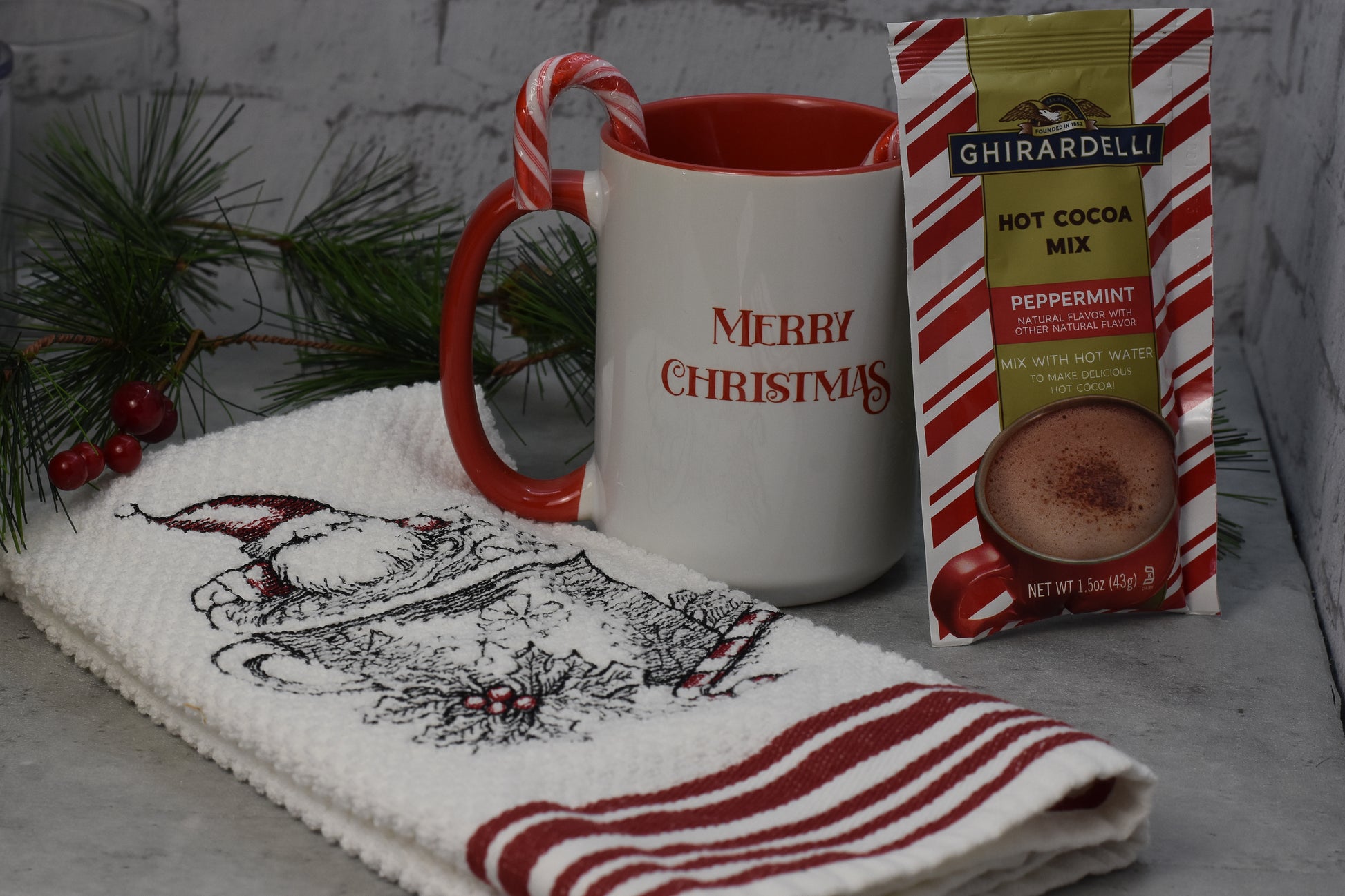 This high-quality cotton toweling features a Santa Gnome & Hot Cocoa design, perfect for Christmas decoration or everyday use in the kitchen. Machine embroidered for maximum durability, it's sure to be a lasting favorite.