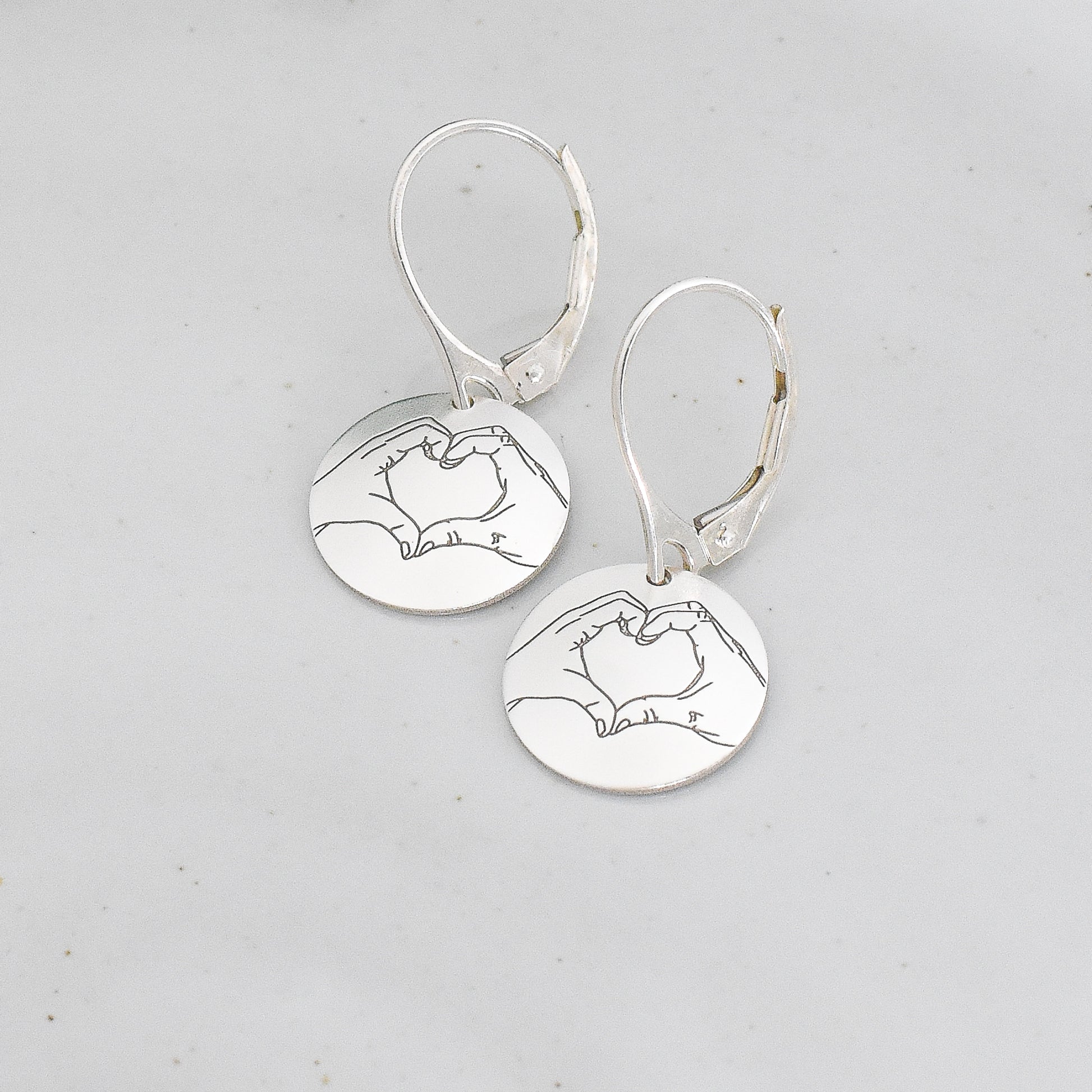 Hand Heart Emoji Earrings - Sterling Silver