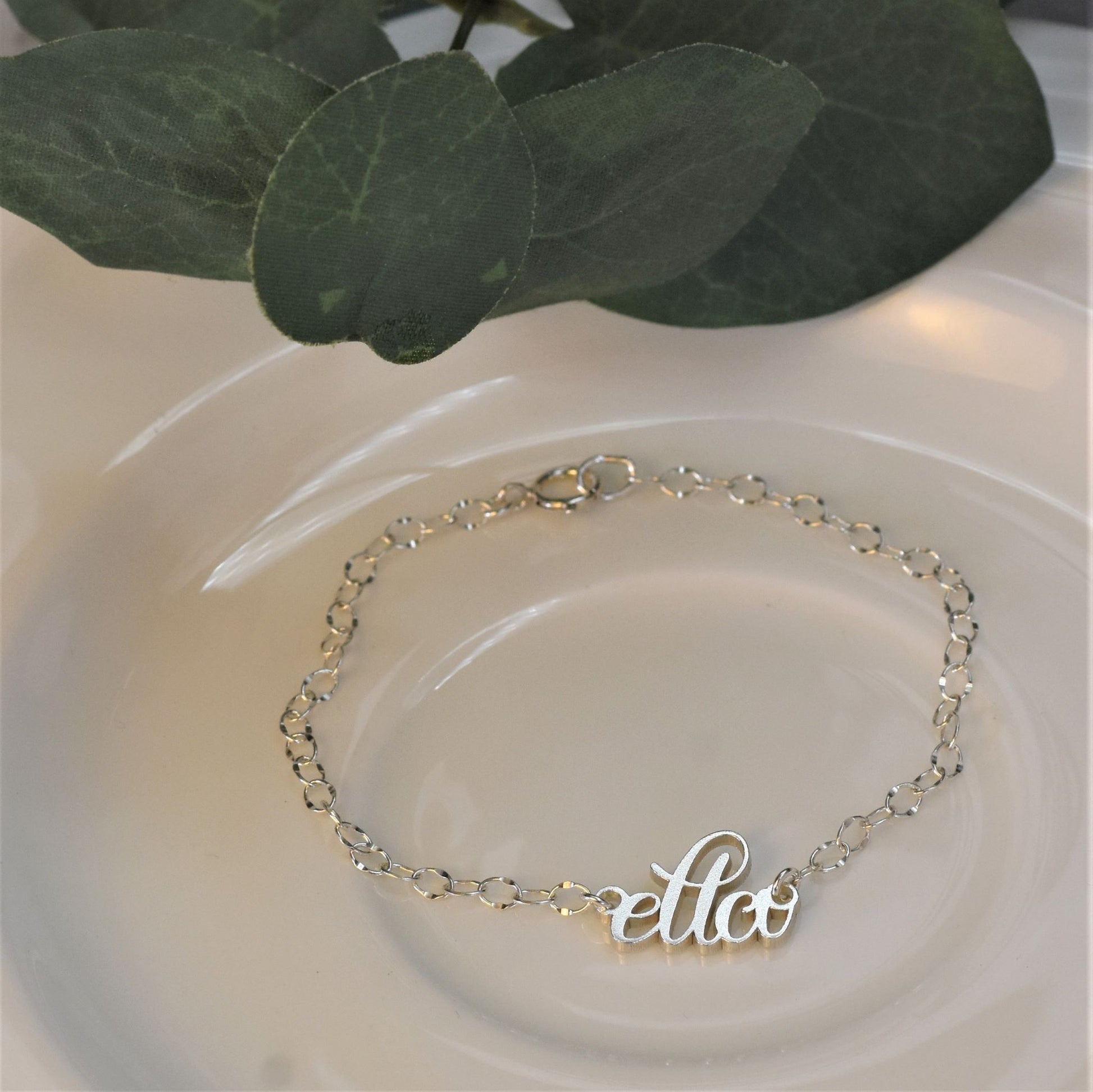 Express your uniqueness with this custom designed sterling silver name bracelet. The intricate laser cutting technique ensures that every detail of your chosen name will be perfectly represented, letting you show off your name with style and pride.