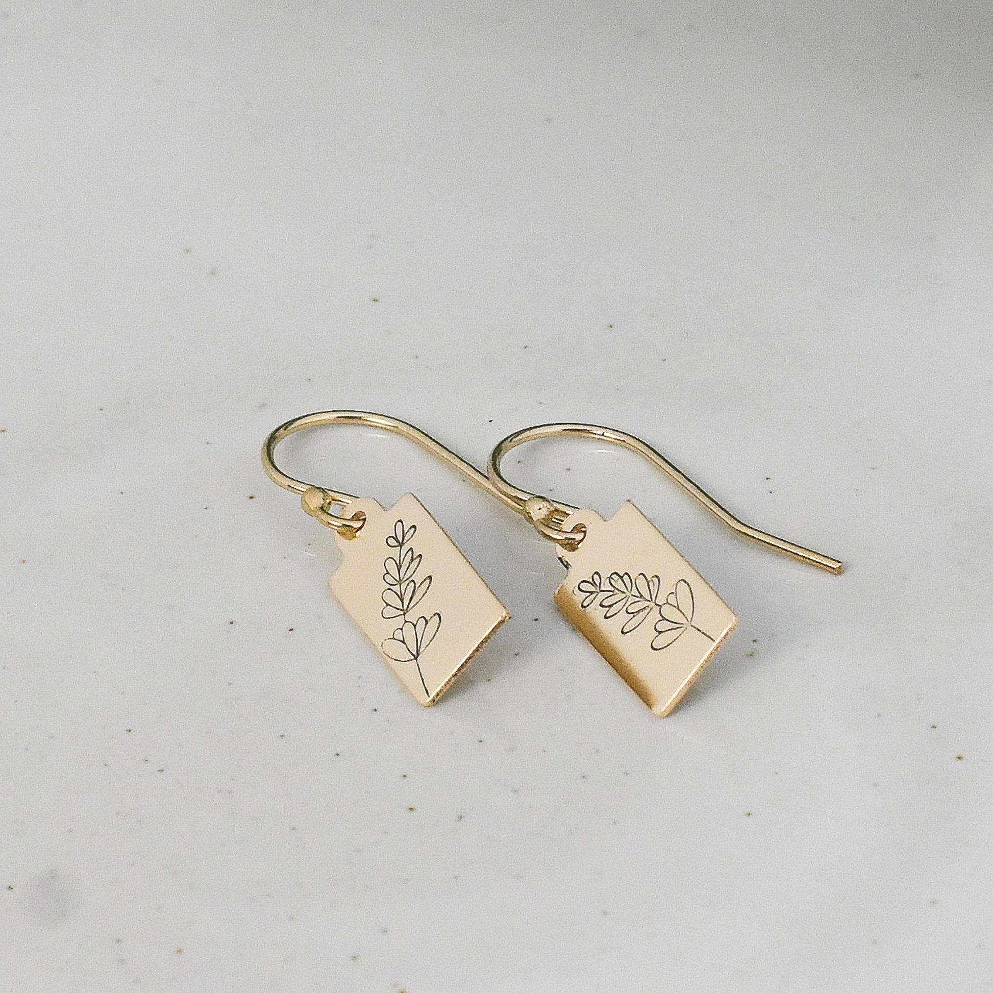 These Lavender Stem Earrings bring a subtle botanical touch to your style with petite tags in either gold filled or sterling silver. Choose from classic french hook or lever back earwires for a perfect fit. A great gift for young adults or for stacking with multiple earrings, these dainty, minimalist designs bring a touch of nature to your look.