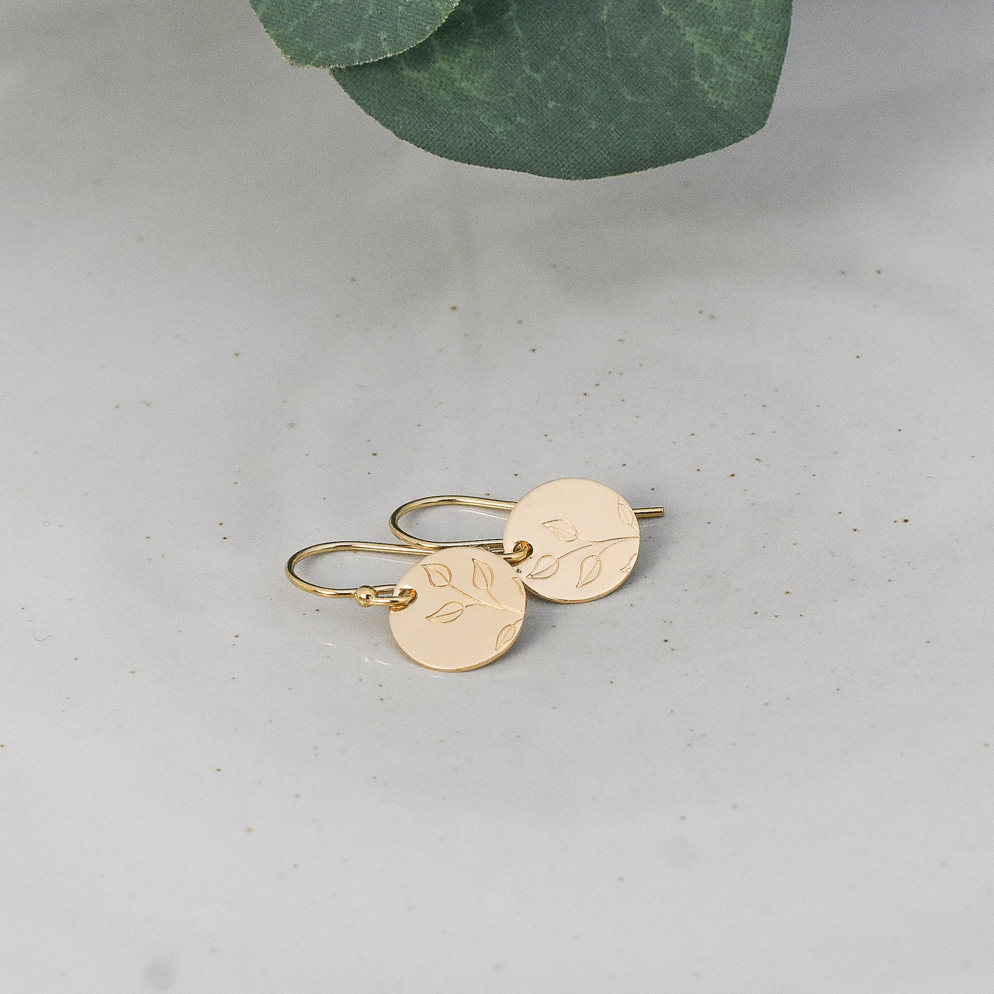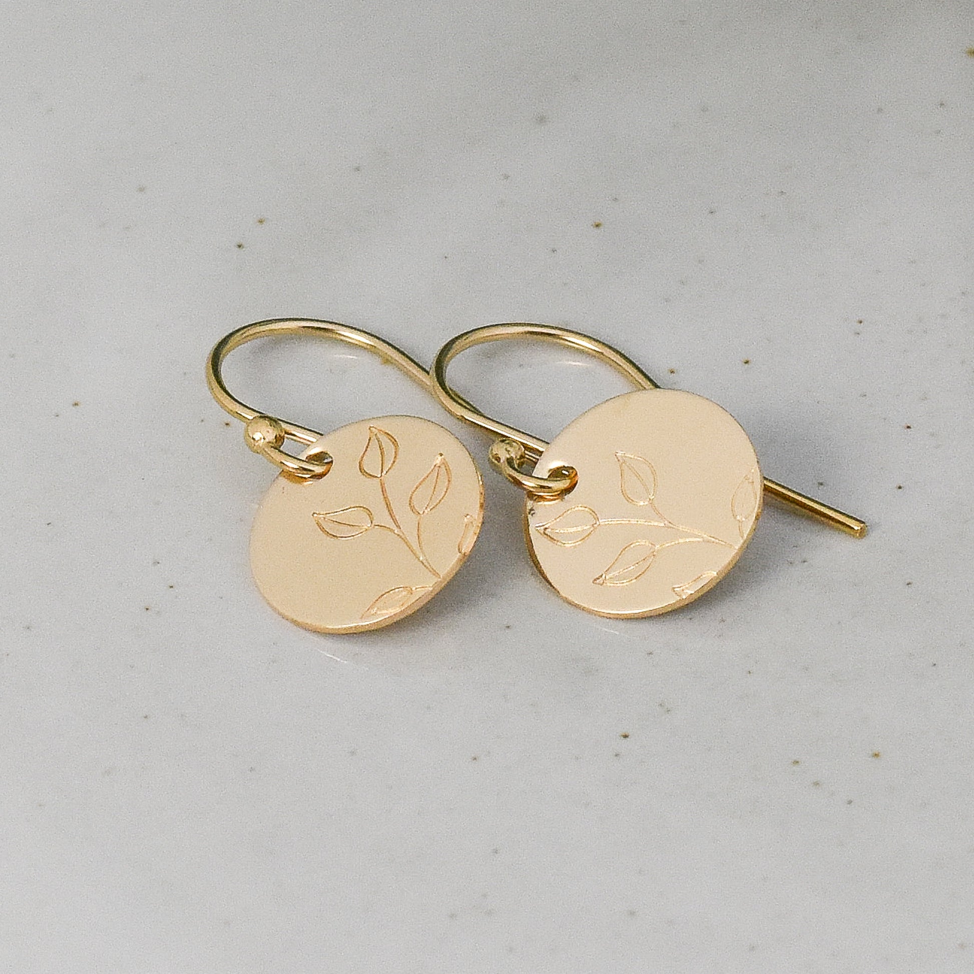Add a graceful touch to your everyday look with these tiny, botanical-inspired earrings. Hand-crafted with your choice of gold-filled or sterling silver, they feature custom stamping for a unique look. Petite and lightweight, they are perfect for daily wear and sure to be a timeless addition to your wardrobe. Choice of french hook or lever back ear wires.