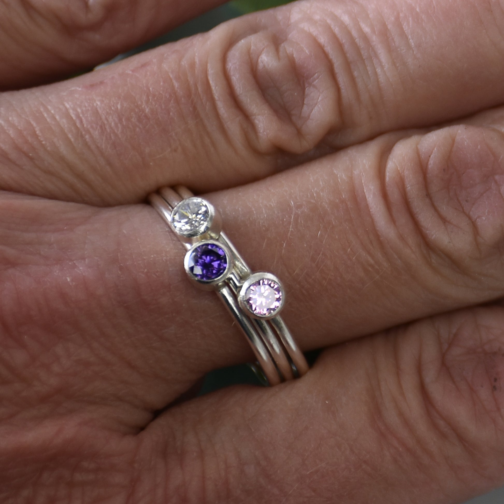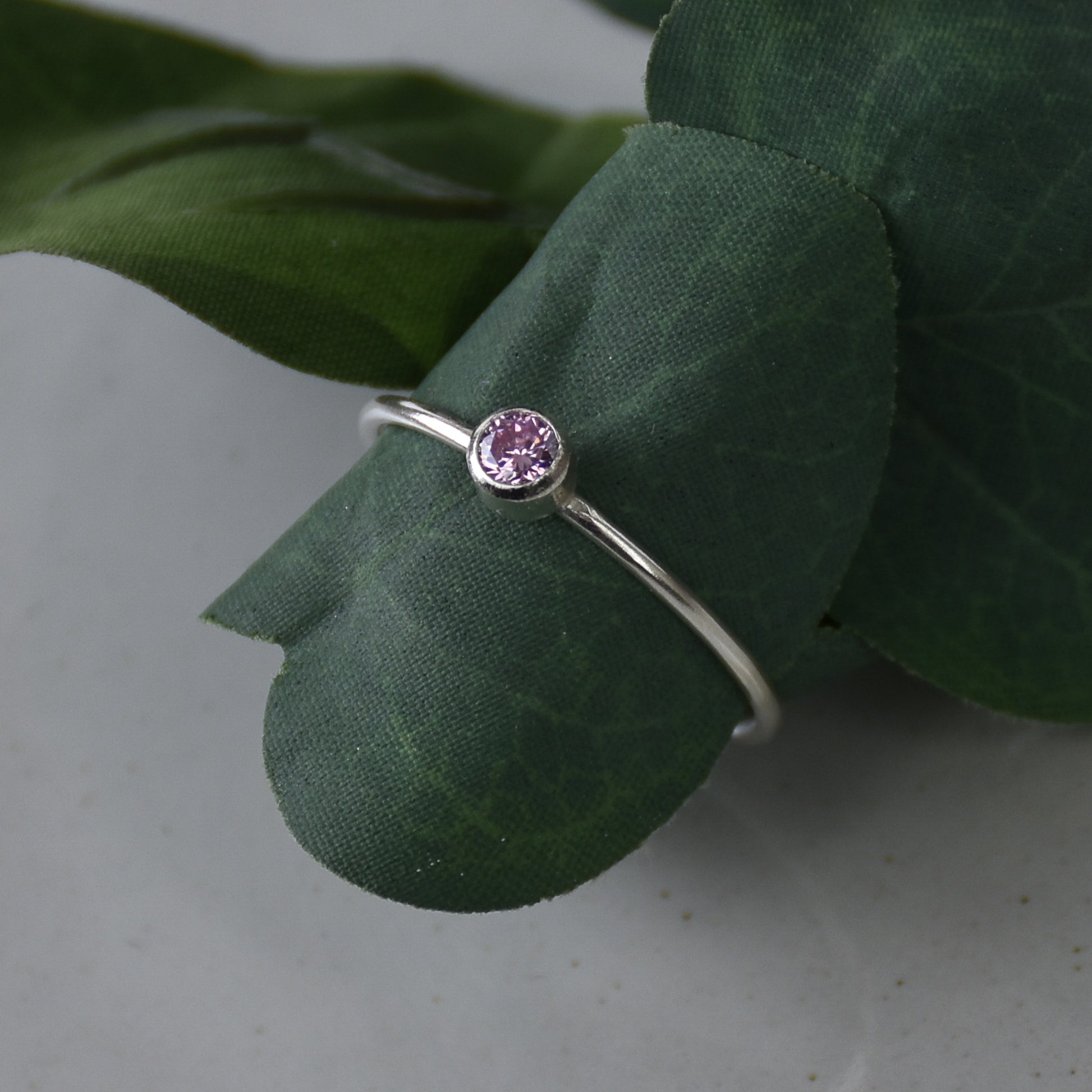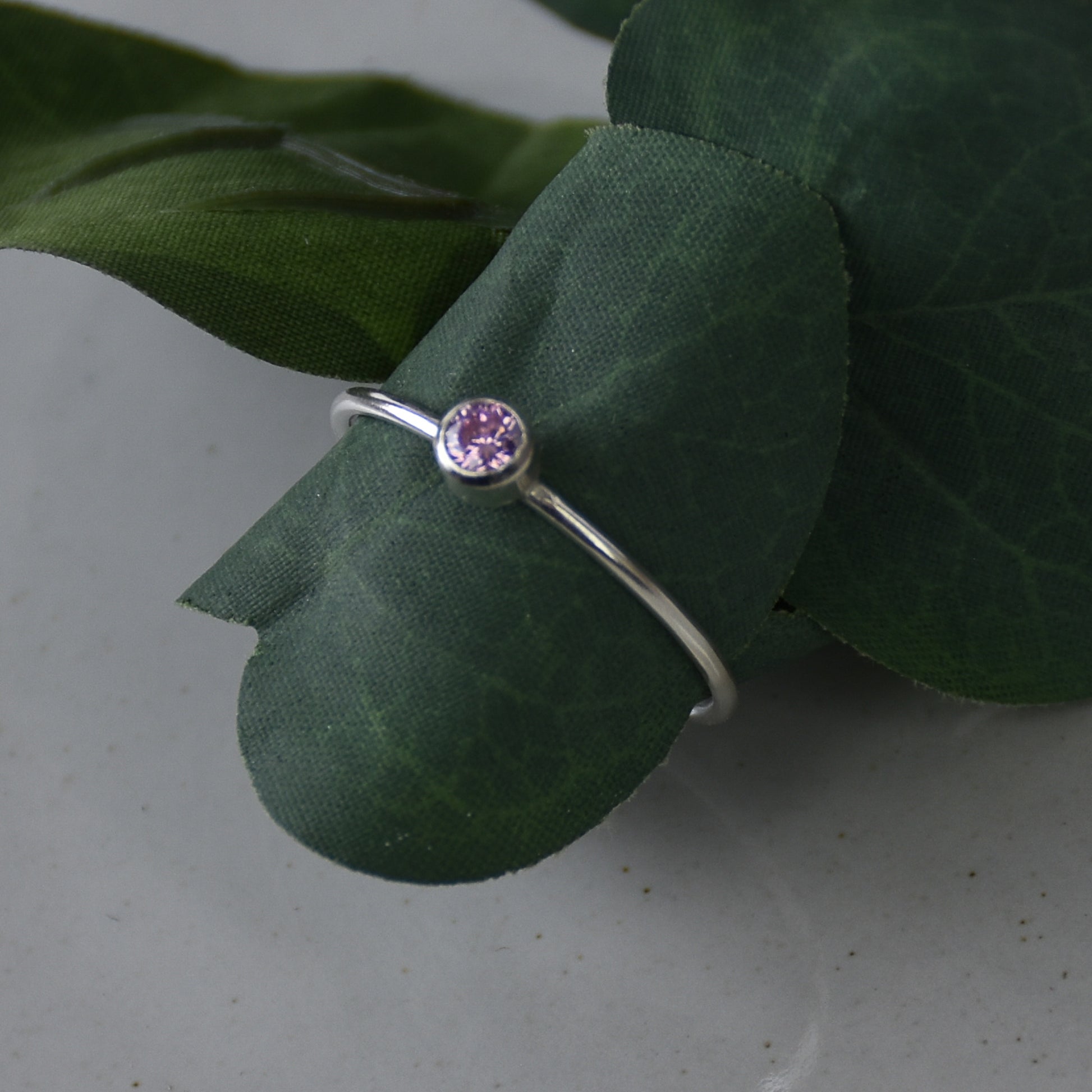 This October birthstone stacking ring features a sparkling pink cubic zirconia stone, bezel set in high-quality sterling silver. its custom sizing allows for the perfect fit, making it an ideal gift for those born in October. Upgrade your birthday jewelry collection with this elegant and timeless piece.