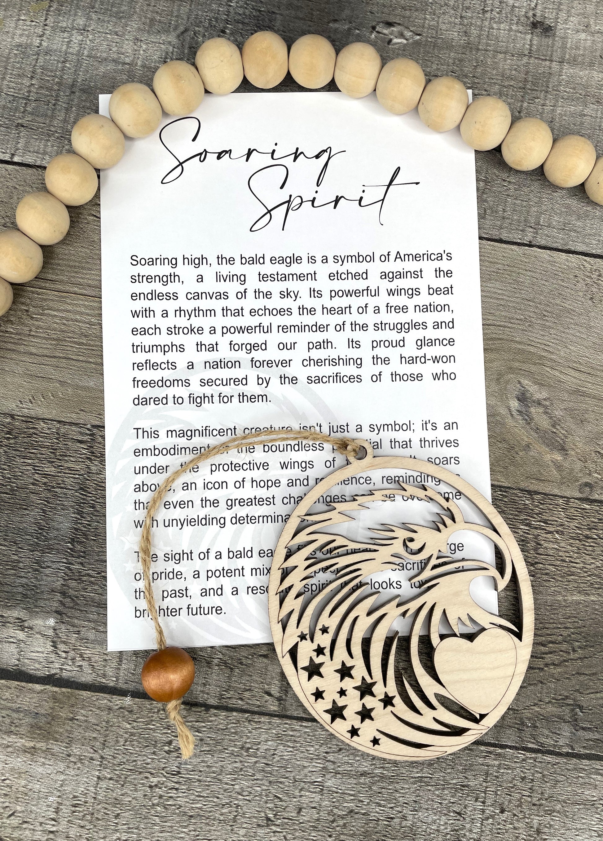 This Eagle Ornament or Charm is a beautifully crafted piece made from laser cut maple wood. With its intricate design and durable material, it can be used as an elegant ornament or a meaningful charm. Each charm comes with a card containing the story of Soaring Spirit making it a perfect gift for anyone seeking inspiration and guidance.