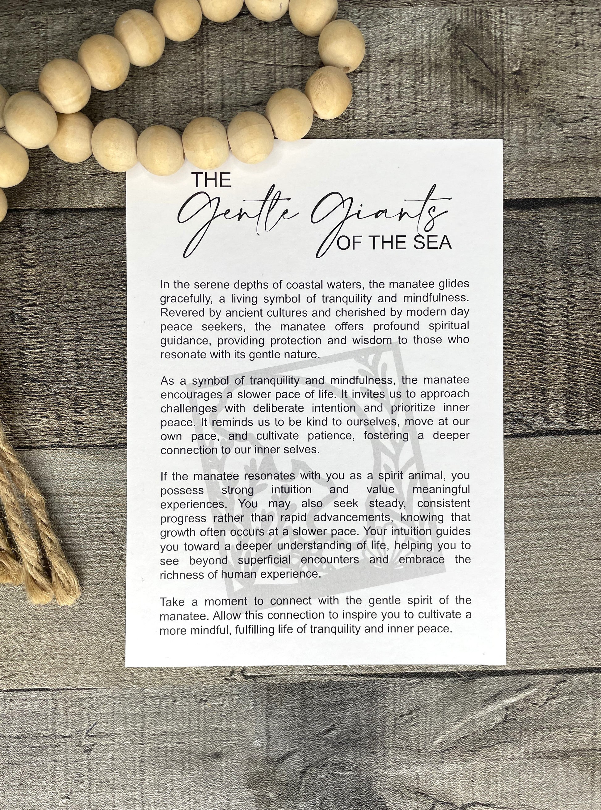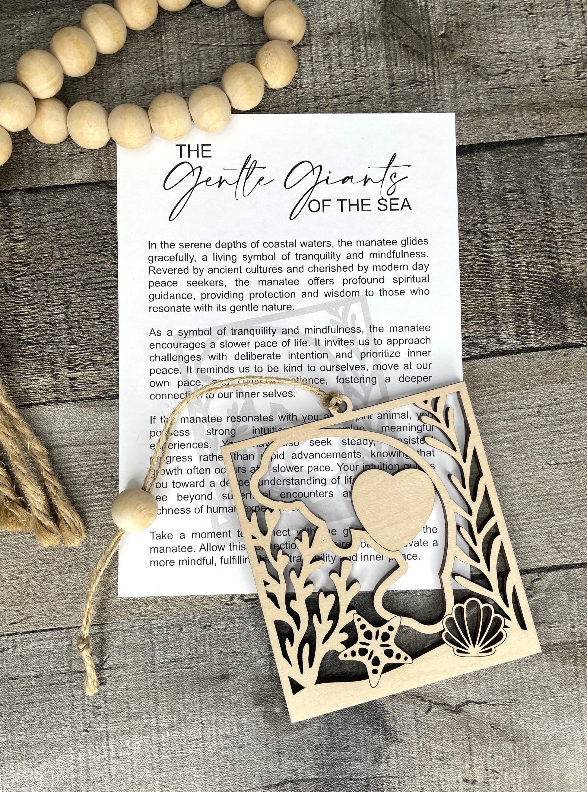 This Manatee Ornament or Charm is a beautifully crafted piece made from laser cut maple wood. With its intricate design and durable material, it can be used as an elegant ornament or a meaningful charm. Each charm comes with a card containing the story of the Gentle Giant of the Sea making it a perfect gift for anyone seeking inspiration and guidance.