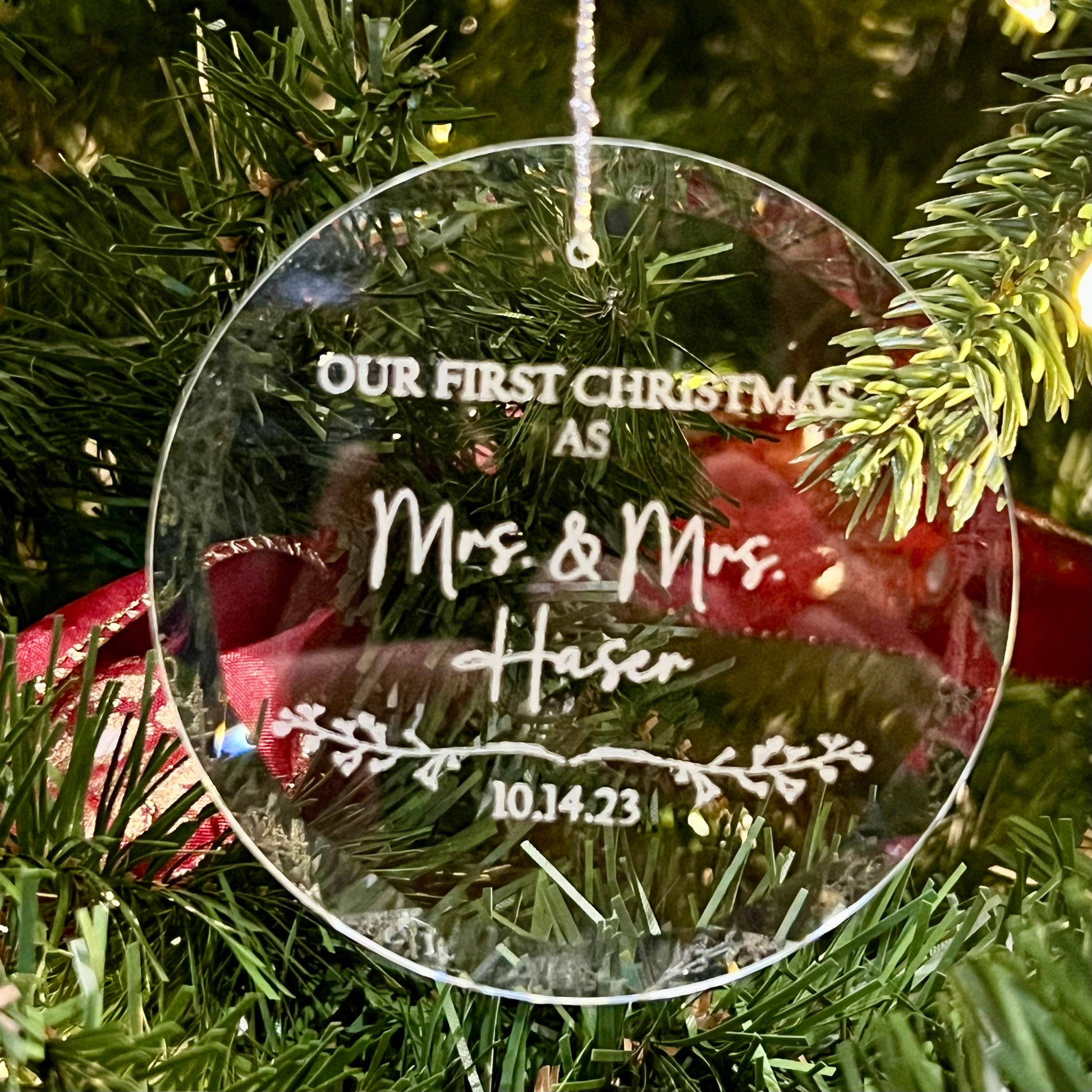 Our First Christmas - Custom Engraved Round Glass Ornament