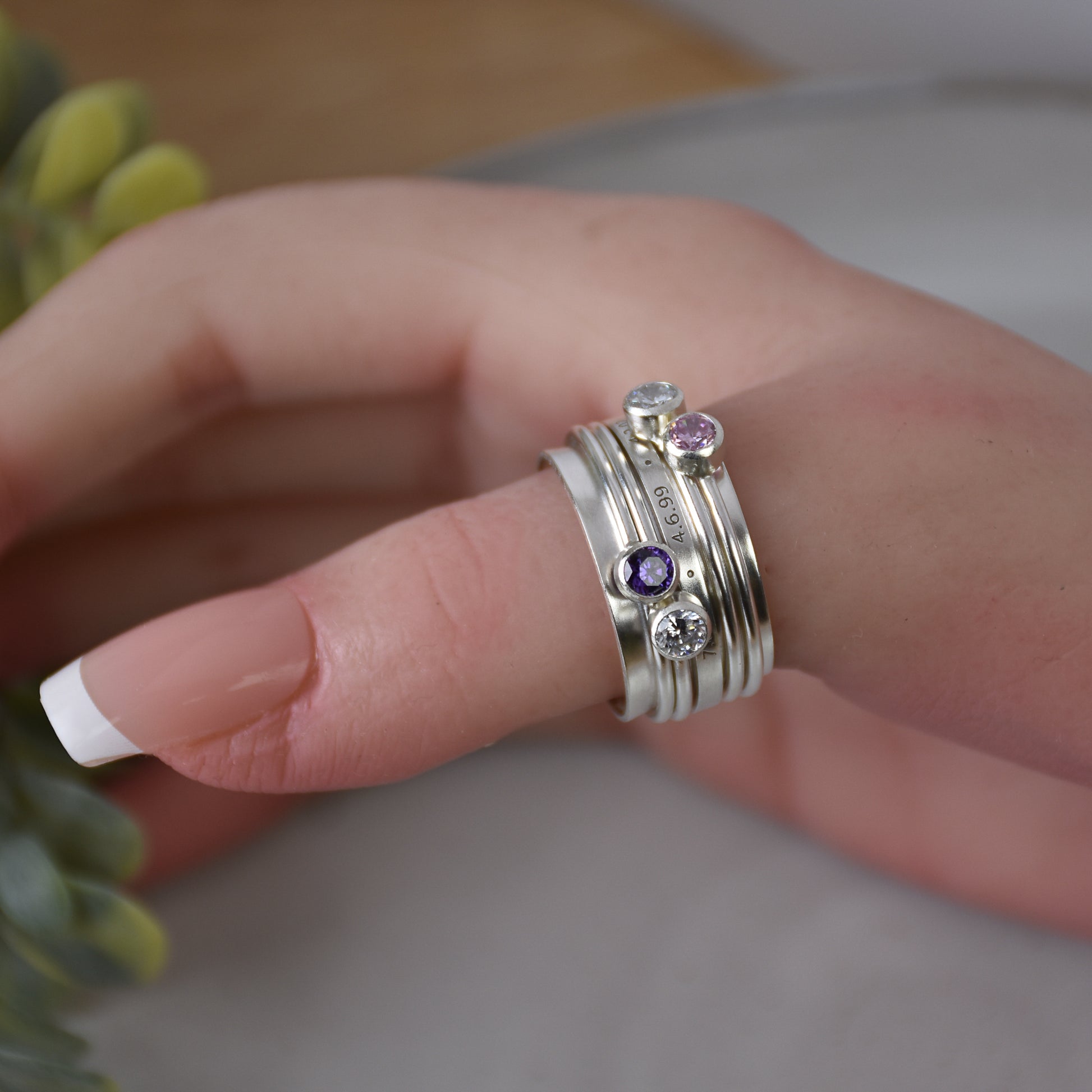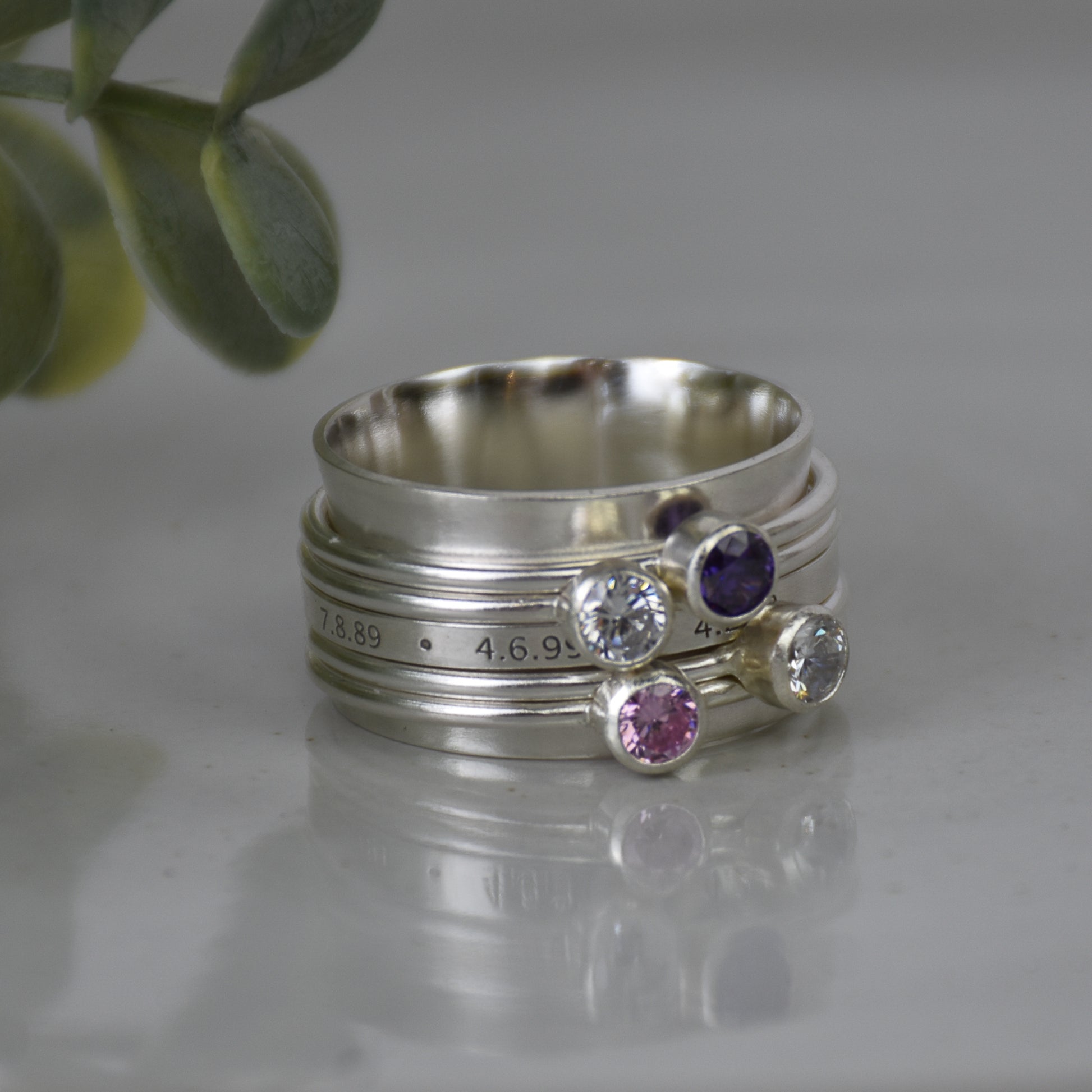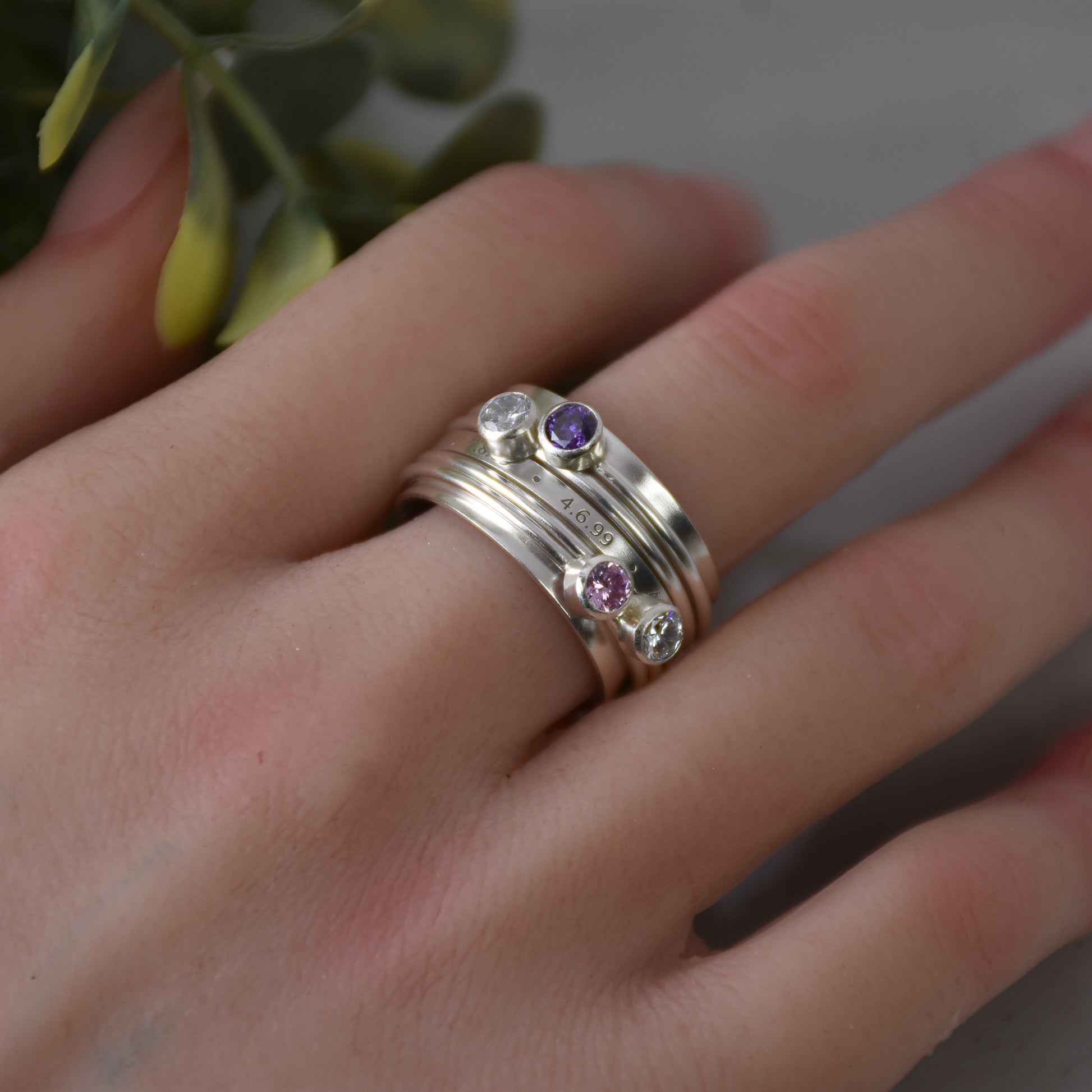 Personalized Birthstone Fidget Ring - Sterling Silver Multi-Band
