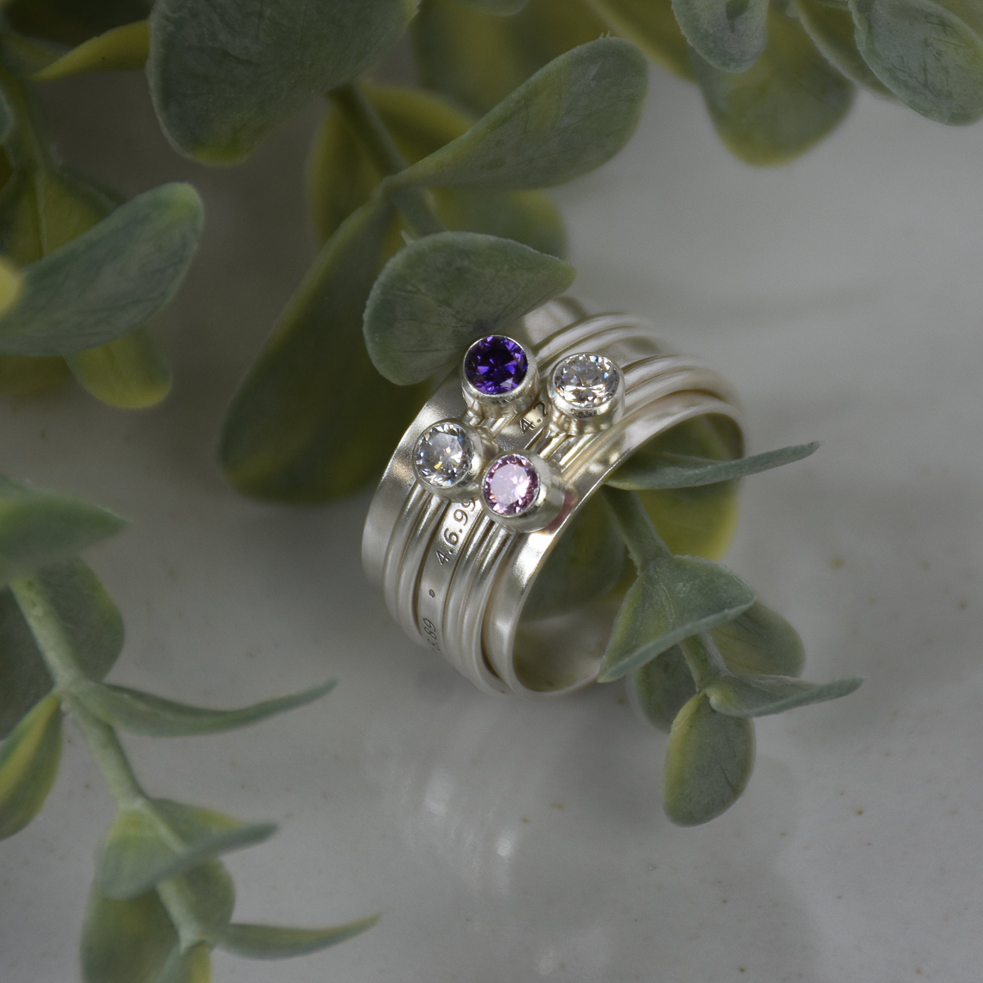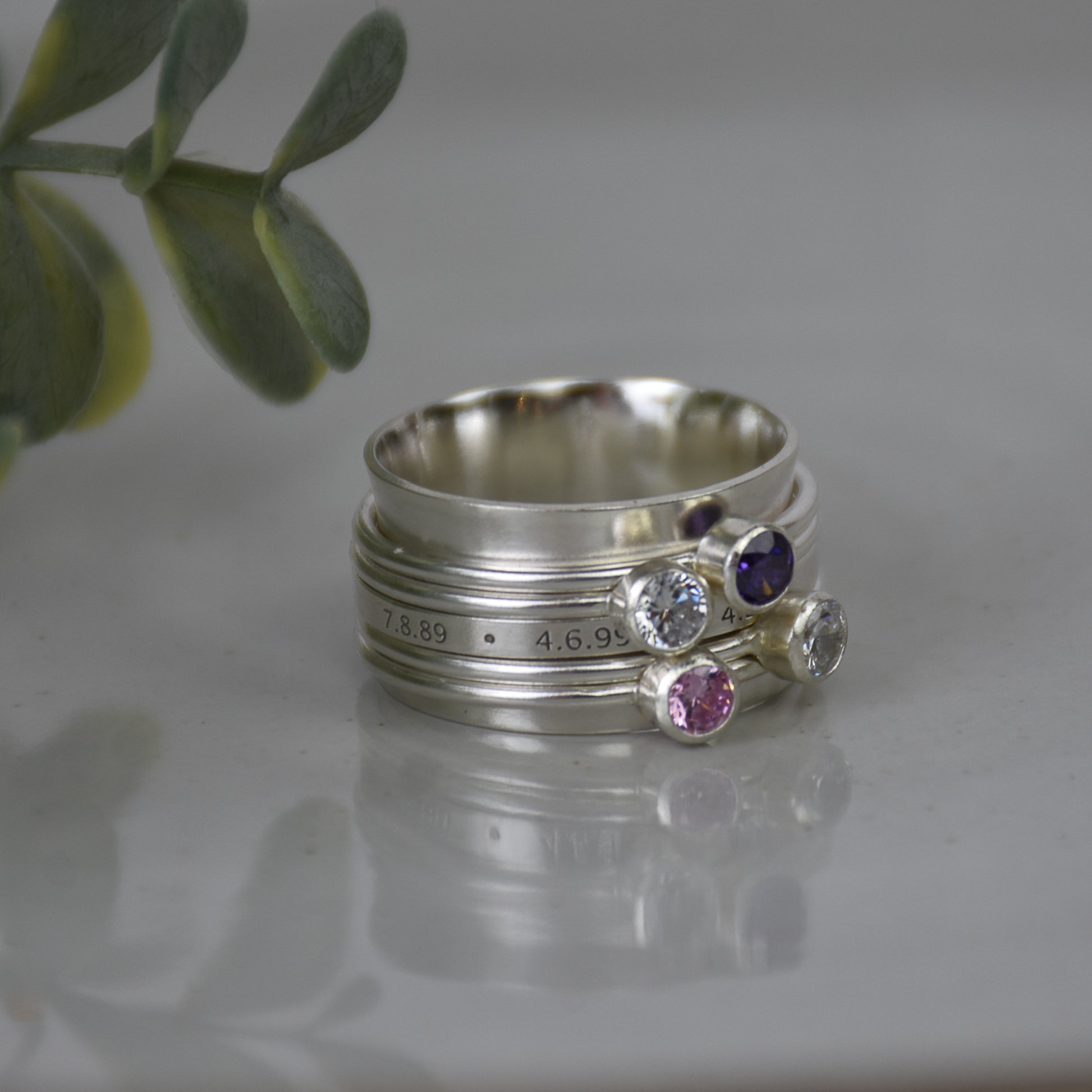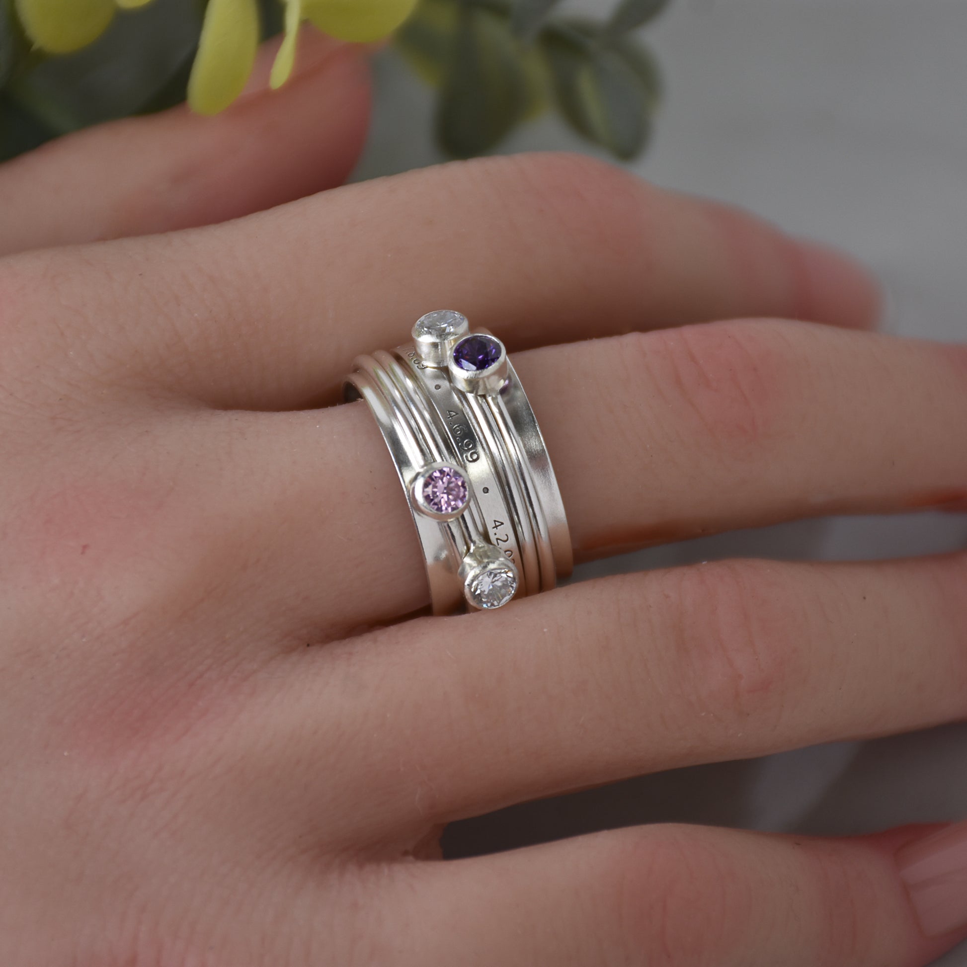 Personalized Birthstone Fidget Ring - Sterling Silver Multi-Band