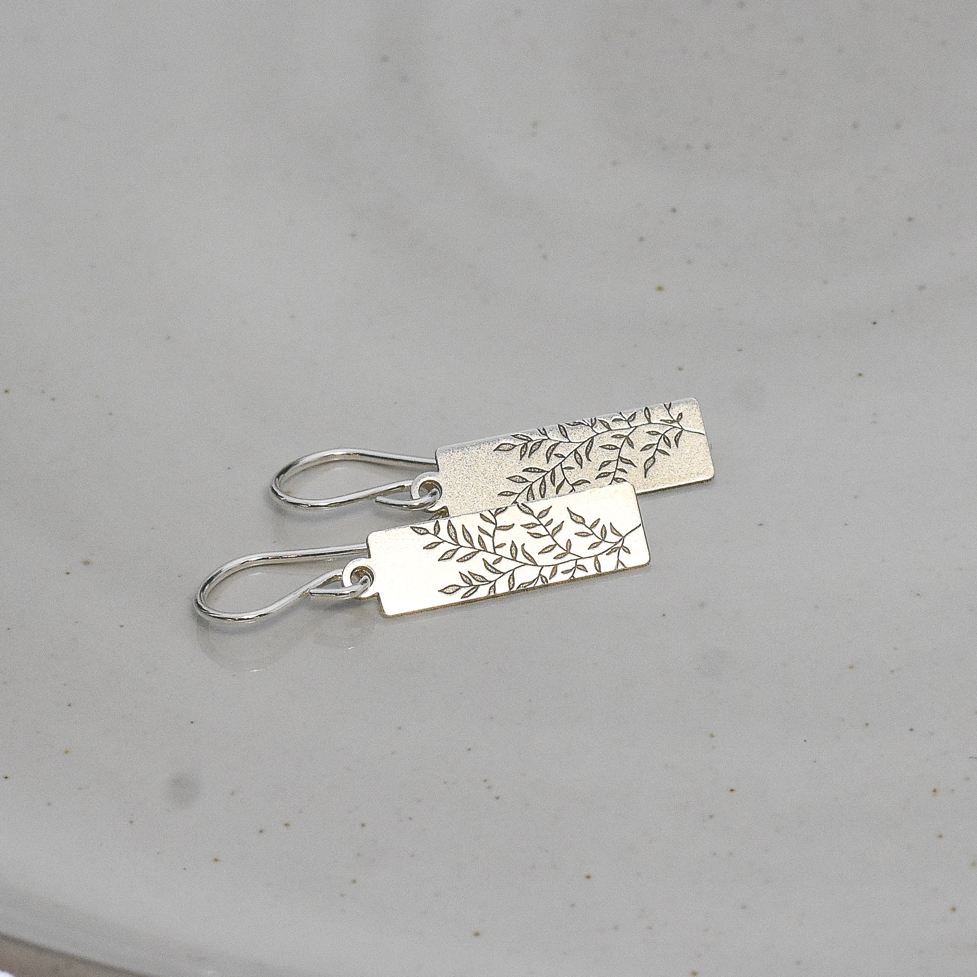These artisanal Petite Leaves Earrings are crafted with sterling silver to create a petite, minimalist design. Detailed with unique botanical engravings, the earrings are designed and cut in-house and can be customized with your choice of ear wire and size. Perfect for dainty jewelry enthusiasts.