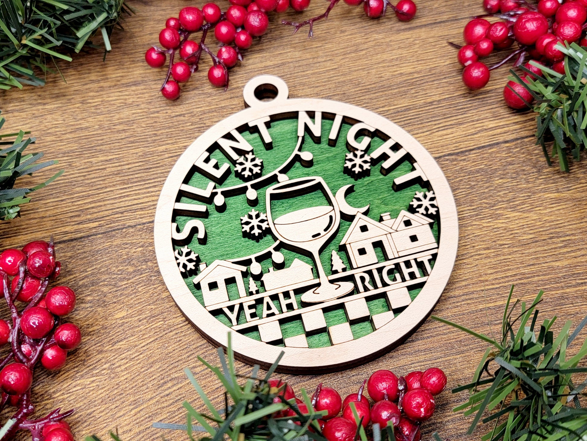 Silent Night, Yeah Right Christmas Ornament - Funny Holiday Tree Decoration