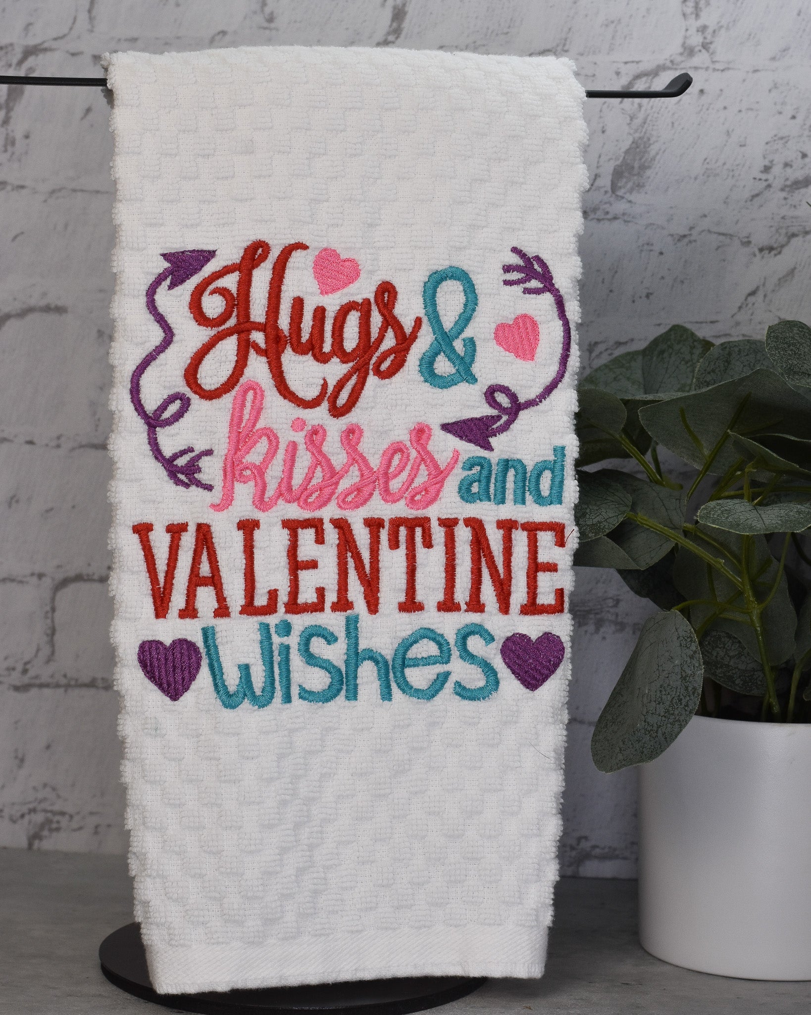 Hugs Kisses and Valentine Wishes Towel - Embroidered
