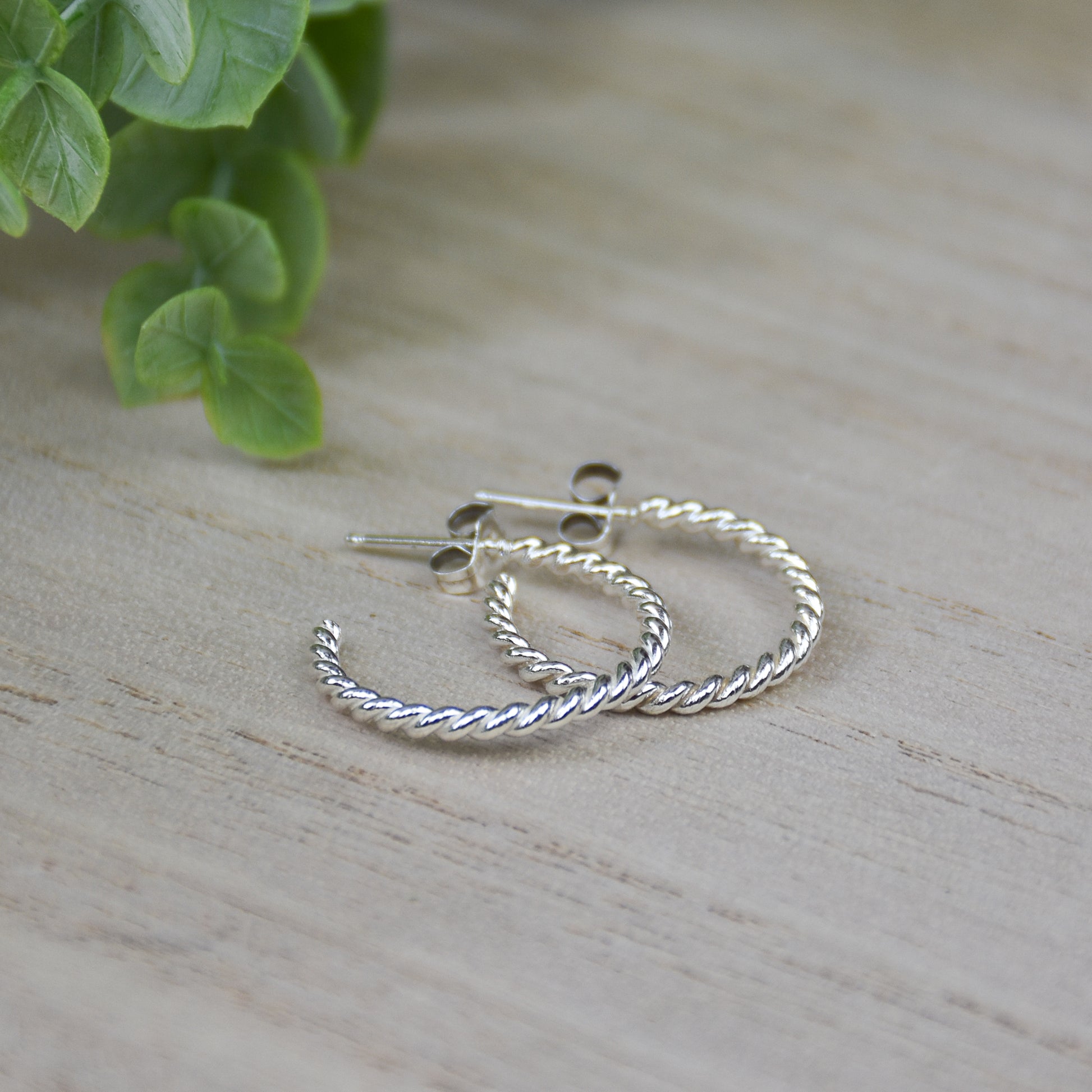 These sterling silver hoop earrings feature a unique twisted rope design and secure post closure. Custom sizing options make them a perfect fit for any wearer. Enjoy the sleek and elegant look of these versatile earrings.