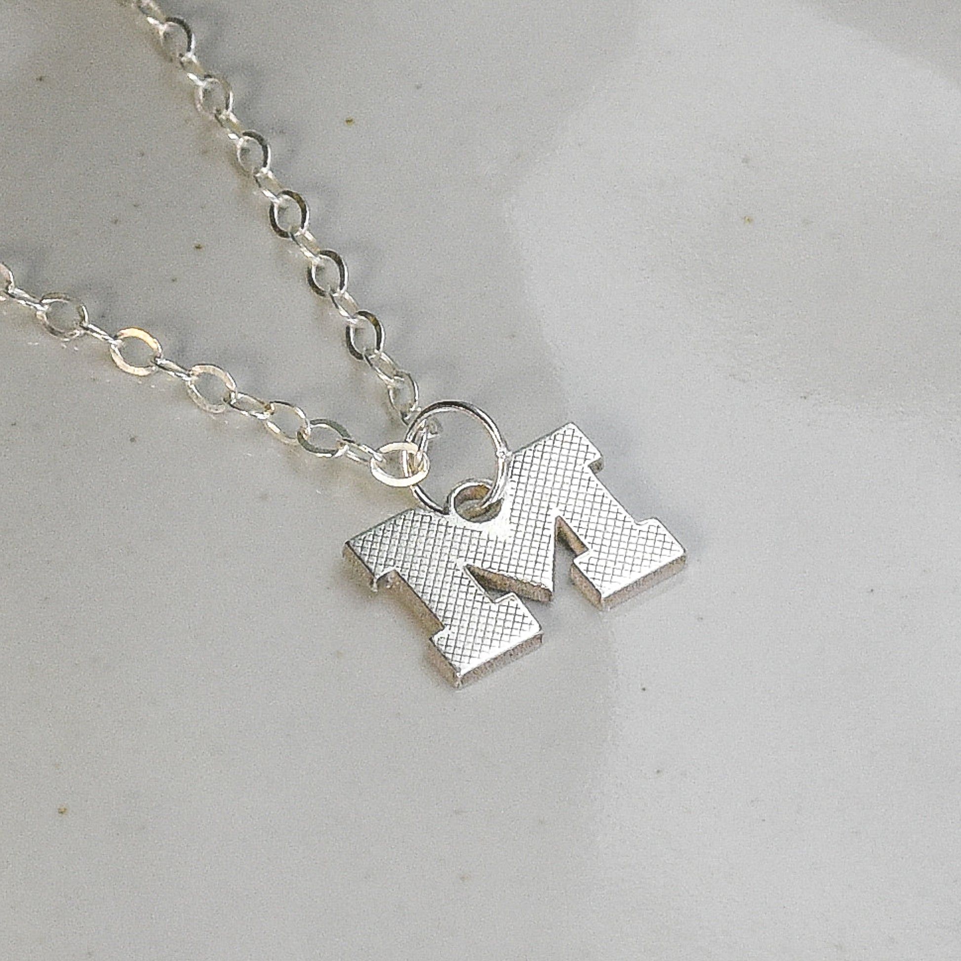 Show your school spirit with this sterling silver varsity letter charm necklace. This fashionable piece of jewelry comes custom-cut according to your school abbreviation, with an adjustable chain length for a perfect fit. Perfect for college alumni or current students.